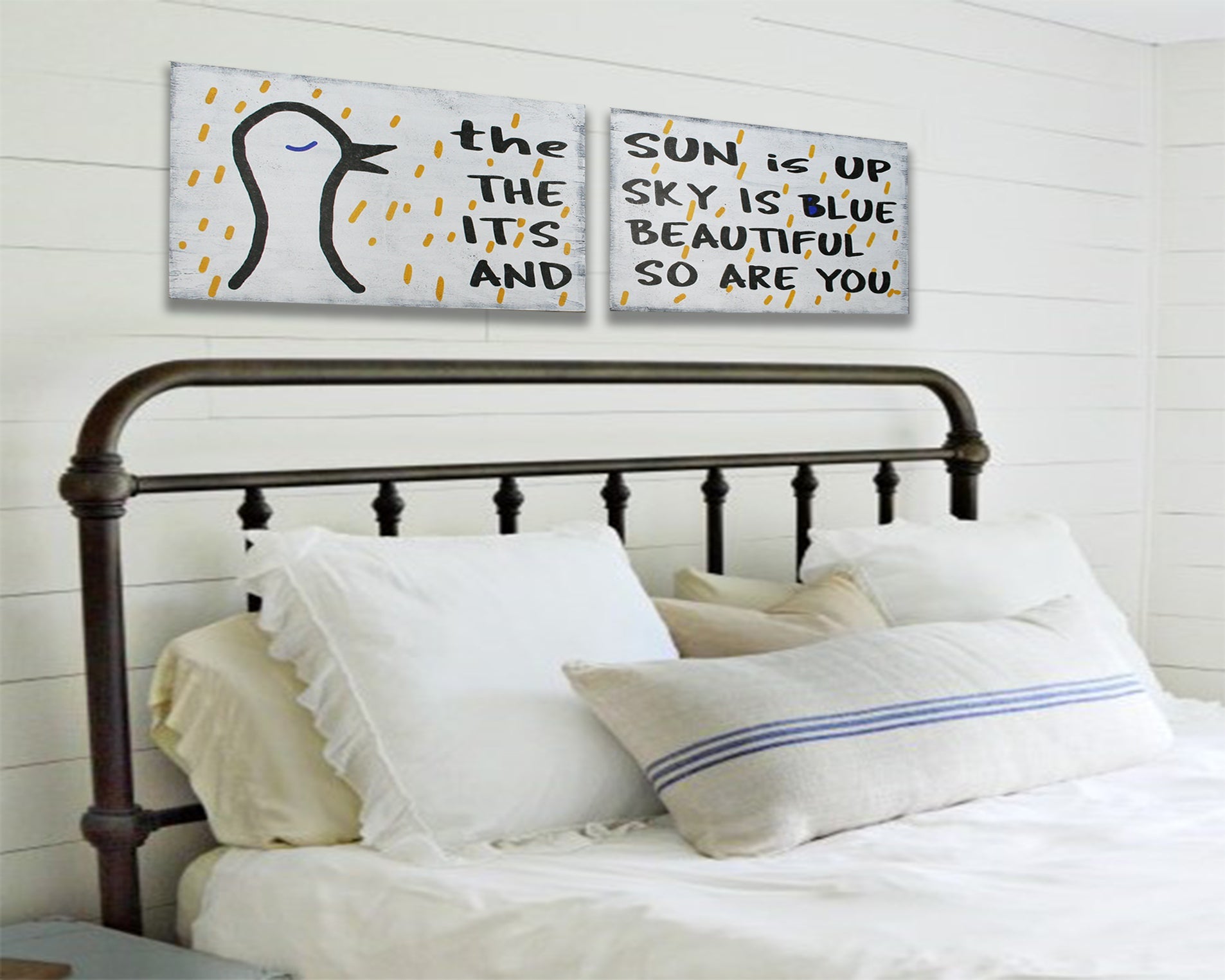 The Sun Is Up The Sky Is Blue It's Beautiful And So Are You! Hang this 2-piece wood sign above the bed in your guest bedroom or kids room. Who wouldn't love to see this every day to remind them that they are beautiful!